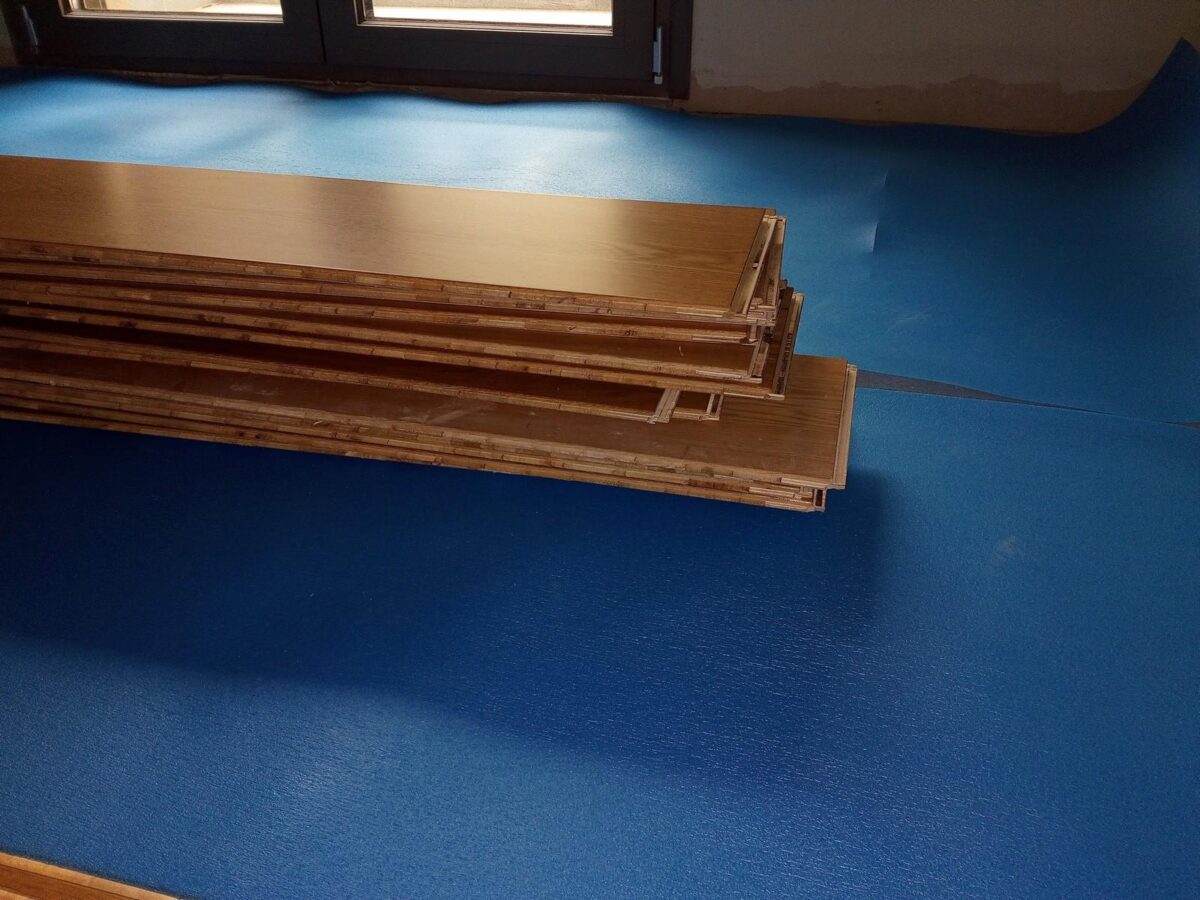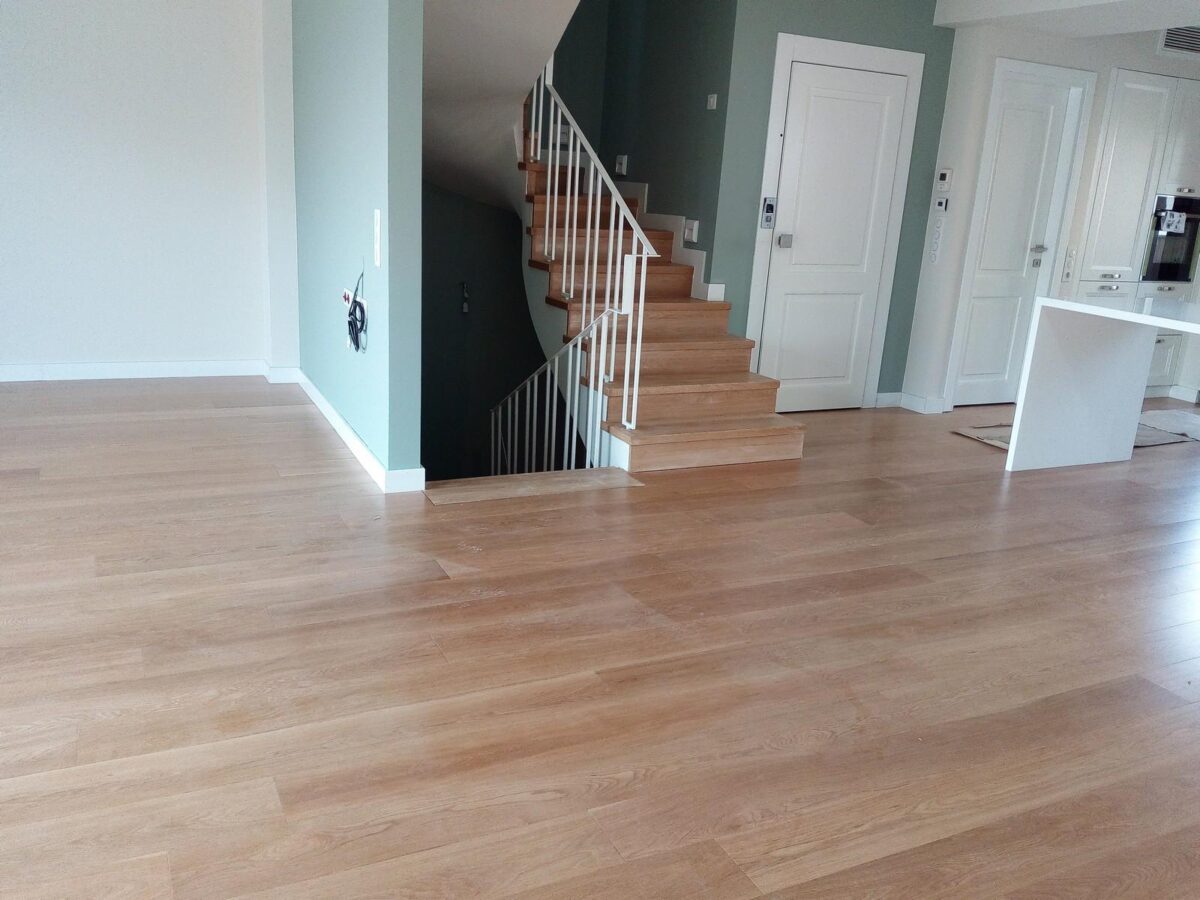 Εγκατάσταση προβερνικωμένου δαπέδου επάνω σε τσιμεντοκονία με την προσθήκη ειδικού υποστρώματος, σε κατοικία με ενδοδαπέδια θέρμανση στην Ν.Κρήνη (Θεσσαλονίκη)